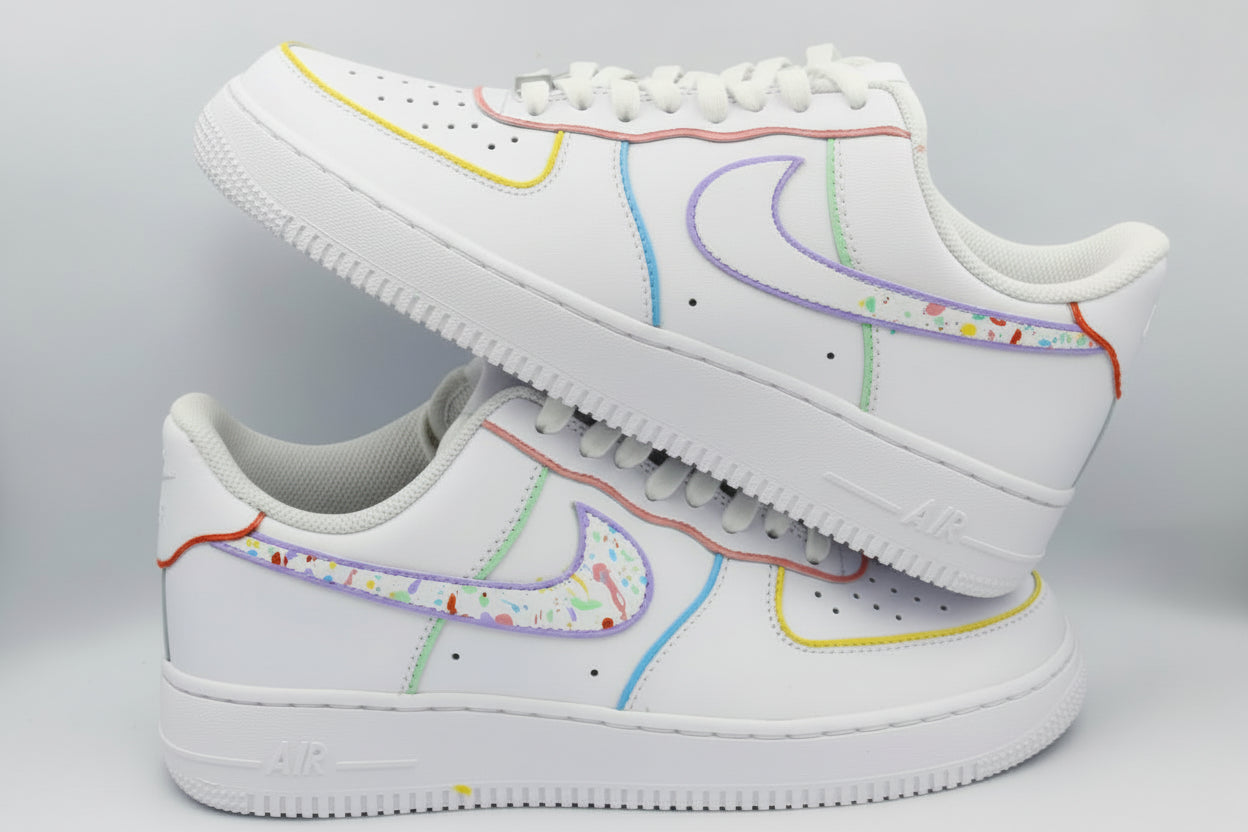 Découvrez la sneaker AF1 Pastel ! Cette paire d'AF1 personnalisée rassemble des couleurs pastel le long des coutures ainsi que des tâches sur le signe.