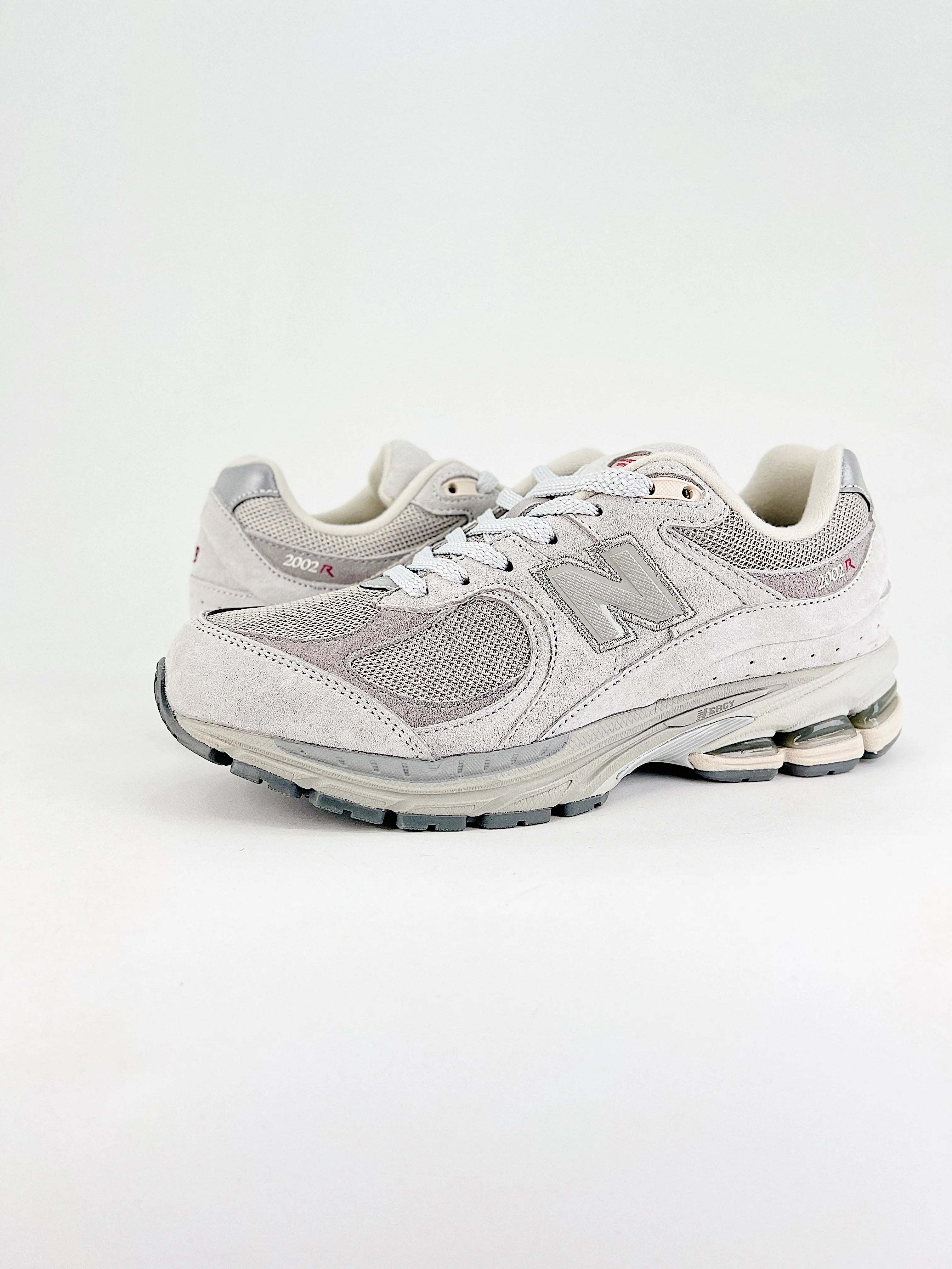 La tige est composée d’un mesh respirant, permettant une bonne circulation de l’air et contribuant au confort du pied tout au long de la journée. Elle est renforcée par des empiècements en suède premium, qui apportent maintien, résistance et un rendu visuel élégant, caractéristique du style rétro-running de la 2002R.