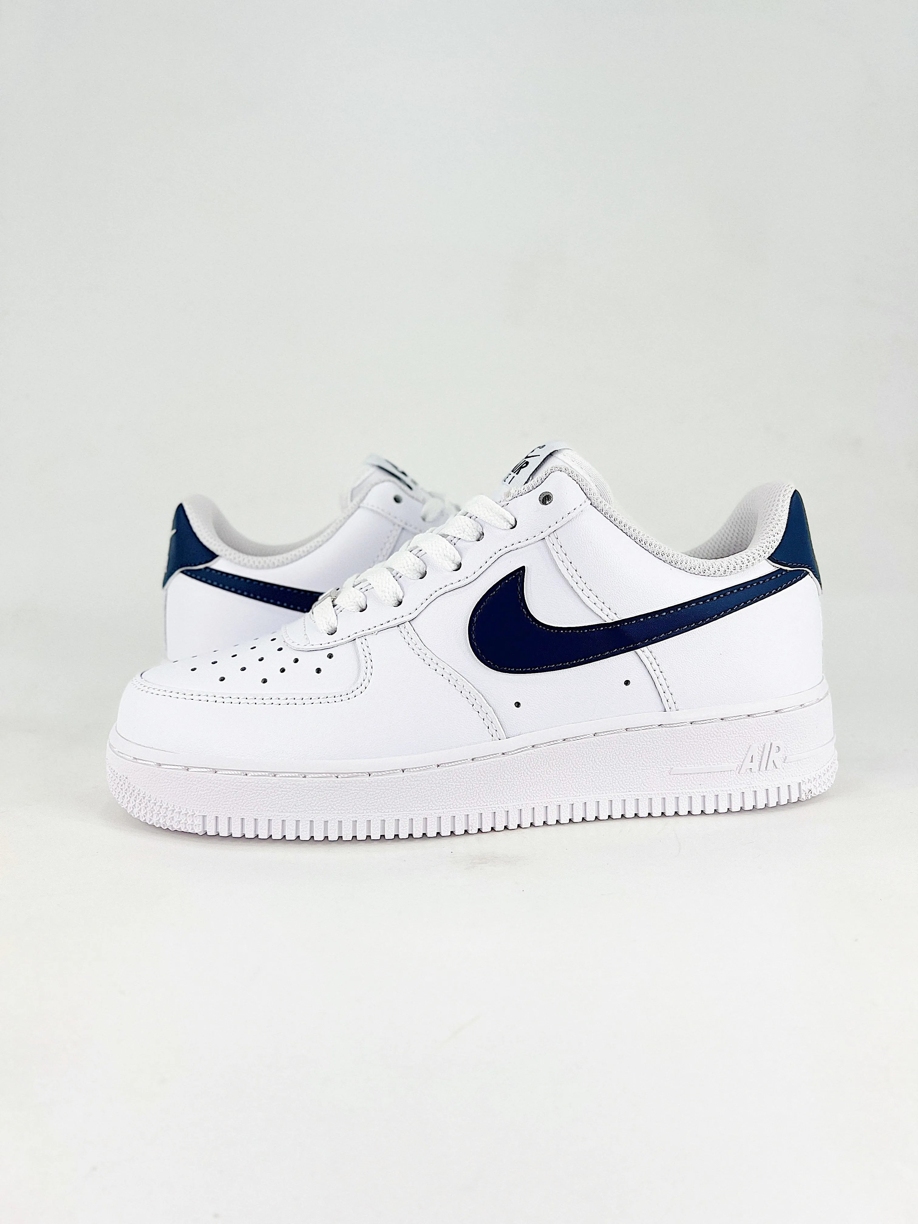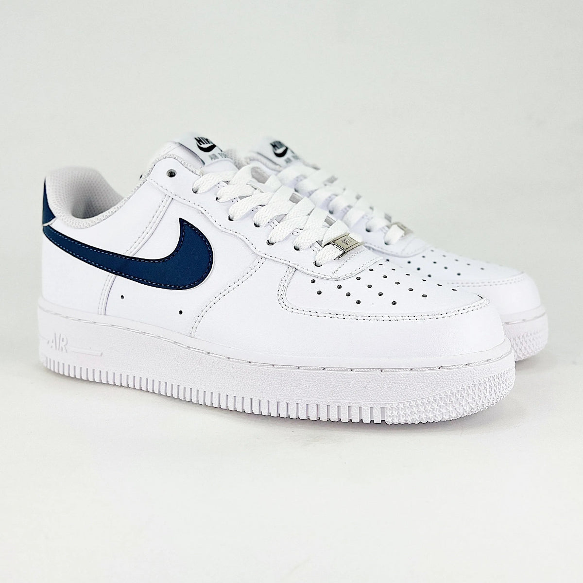 Découvrez la Nike Air Force 1 Blanche et Bleu Marine, une sneaker incontournable qui associe élégance et style sportif. Sa base blanche éclatante offre un look propre et intemporel, sublimée par un swooch bleu marine qui ajoutent une touche de caractère et de modernité.