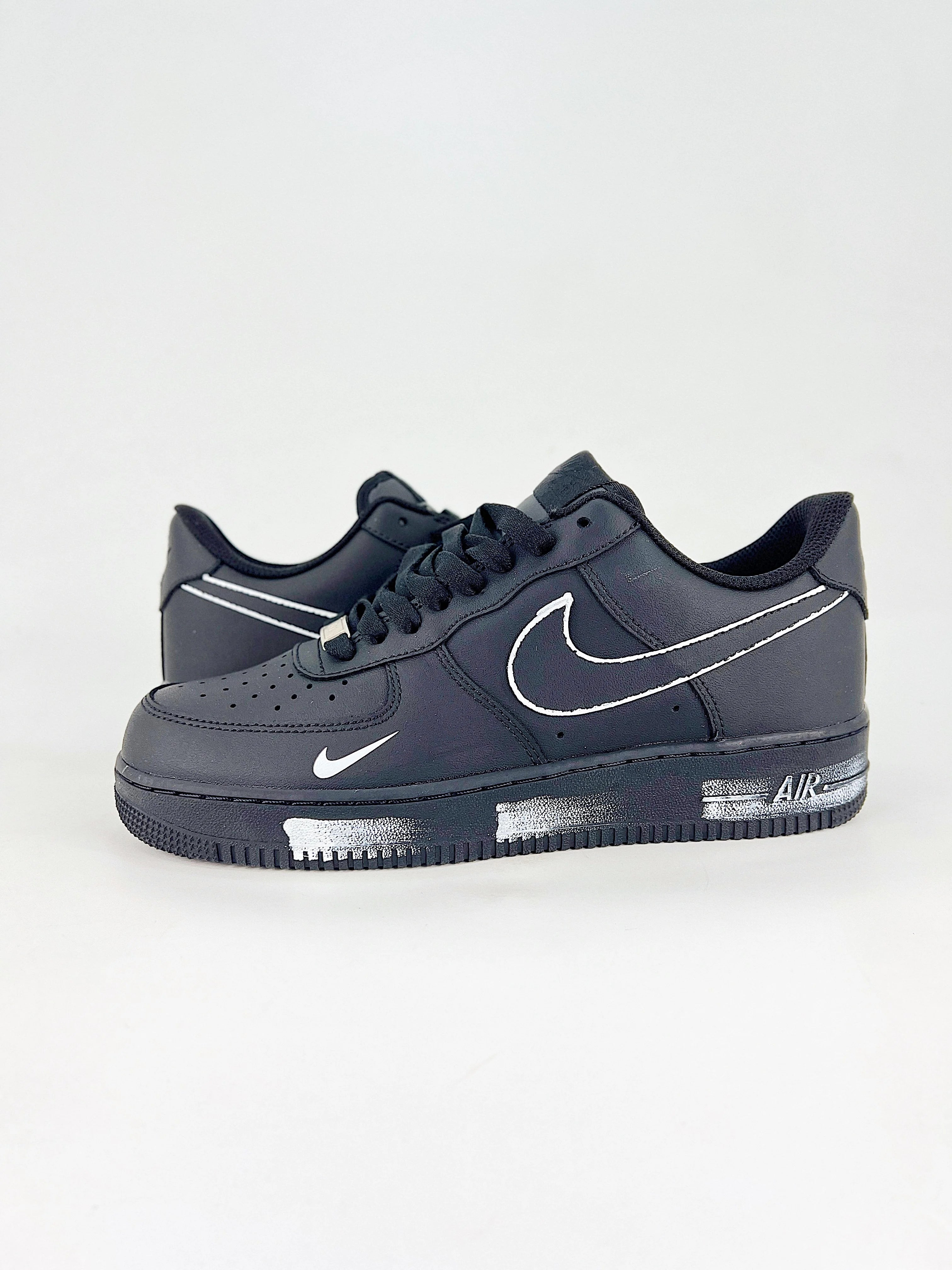 Cette Basket personnalisée se distingue par son contour de Swoosh entièrement souligné en blanc, associé à de légères traces de peinture blanche ajoutant un effet moderne, artistique et subtil. Le résultat : une AF1 propre, élégante et unique, parfaite pour ceux qui recherchent une personnalisation discrète mais impactante.